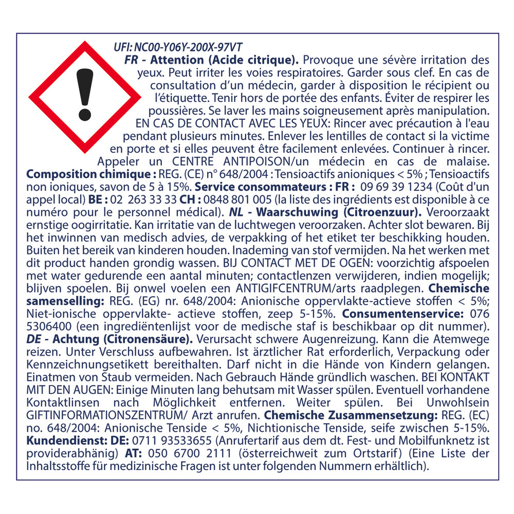 De Wpro professionele 3-in-1 ontkalker en ontvetter is de optimale oplossing om uw apparaten in de beste staat te behouden. Zijn speciale formule vermindert op doeltreffende wijze kalkaanslag op het verwarmingselement en de belangrijkste onderdelen van uw wasmachine en vaatwasser, zoals de trommel, buizen en pomp. Het verwijdert vet-en zeepresten zelfs op moeilijk bereikbare en onzichtbare delen van de apparaten, en voorkomt zo de ontwikkeling van onaangename geurtjes. Giet de inhoud van het zakje direct in de trommel of zeepbakje, start een 60°C lege cyclus zonder voorwas. Voeg geen ander onderhoudsproduct toe. Gebruik 1 zakje per maand voor een continu onderhoud. De DES616 bevat 6 zakjes van 50 g. Goed voor 6 maanden onderhoud.