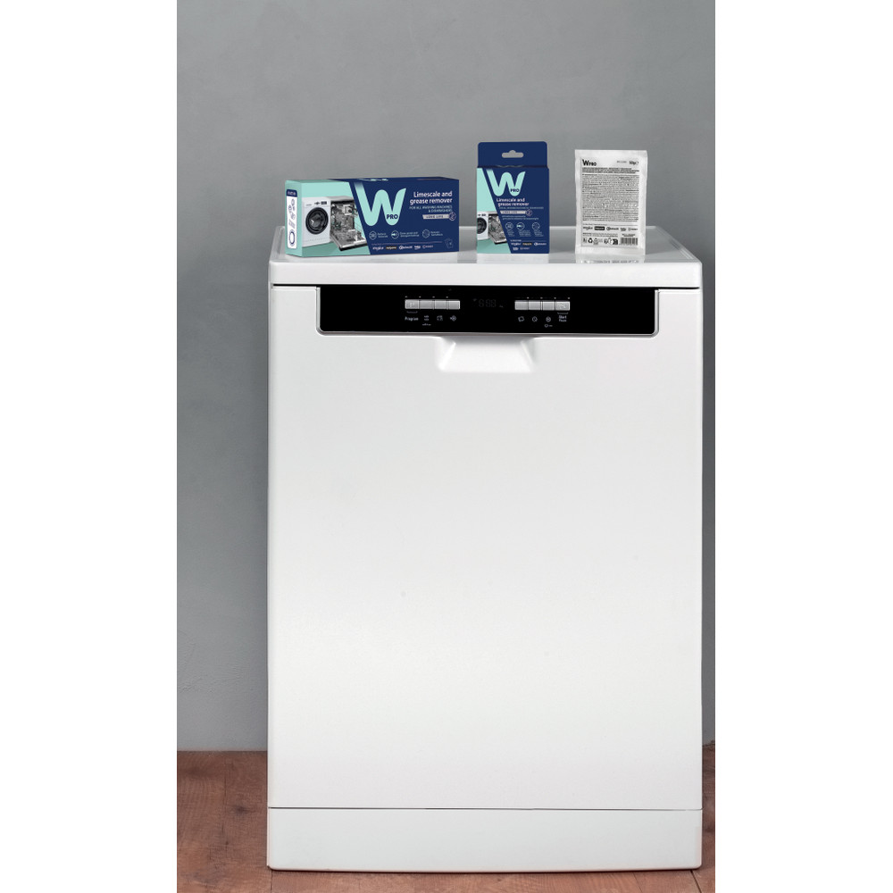 De Wpro professionele 3-in-1 ontkalker en ontvetter is de optimale oplossing om uw apparaten in de beste staat te behouden. Zijn speciale formule vermindert op doeltreffende wijze kalkaanslag op het verwarmingselement en de belangrijkste onderdelen van uw wasmachine en vaatwasser, zoals de trommel, buizen en pomp. Het verwijdert vet-en zeepresten zelfs op moeilijk bereikbare en onzichtbare delen van de apparaten, en voorkomt zo de ontwikkeling van onaangename geurtjes. Giet de inhoud van het zakje direct in de trommel of zeepbakje, start een 60°C lege cyclus zonder voorwas. Voeg geen ander onderhoudsproduct toe. Gebruik 1 zakje per maand voor een continu onderhoud. De DES131 bevat 12 zakjes van 50 g. Goed voor 1 jaar onderhoud.