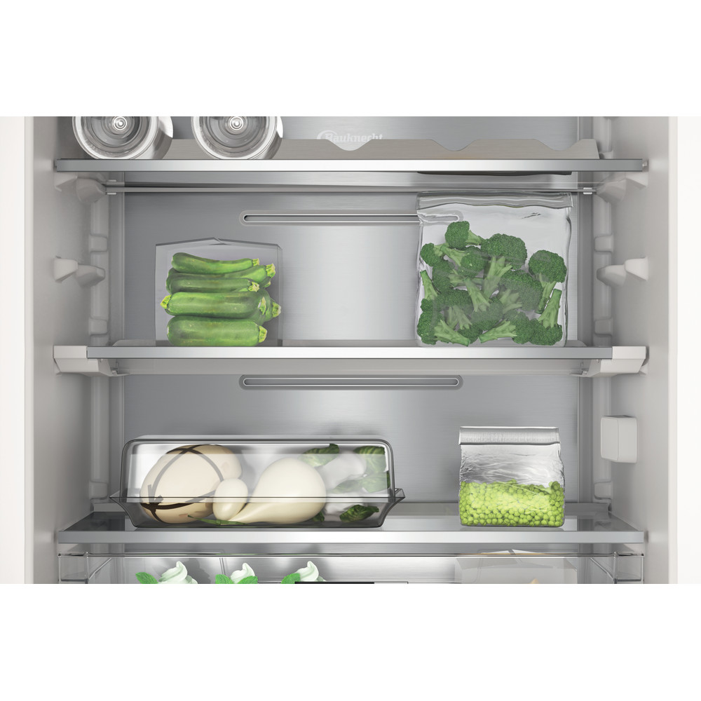 Kenmerken van deze Bauknecht integreerbare koel-vriescombinatie: ventilator die ervoor zorgt dat de koele lucht gelijkmatig wordt verdeeld in het apparaat voor een betere bewaring van het voedsel. Groot formaat, geschikt voor het hele gezin. Iedere keer dat u de deur van uw koelkast opent, wordt de Active Fresh technologie geactiveerd. Deze zorgt ervoor dat de ideale temperatuur in de koelkast wordt hersteld en dat deze altijd constant blijft. Diepvriesgedeelte onderaan. Vakantiemodus, verlaagt het energieverbruik wanneer u weg bent. Robuuste en elegante glazen legplateaus. Handig flessenrek om uw flessen veilig te bewaren. Kleur wit.