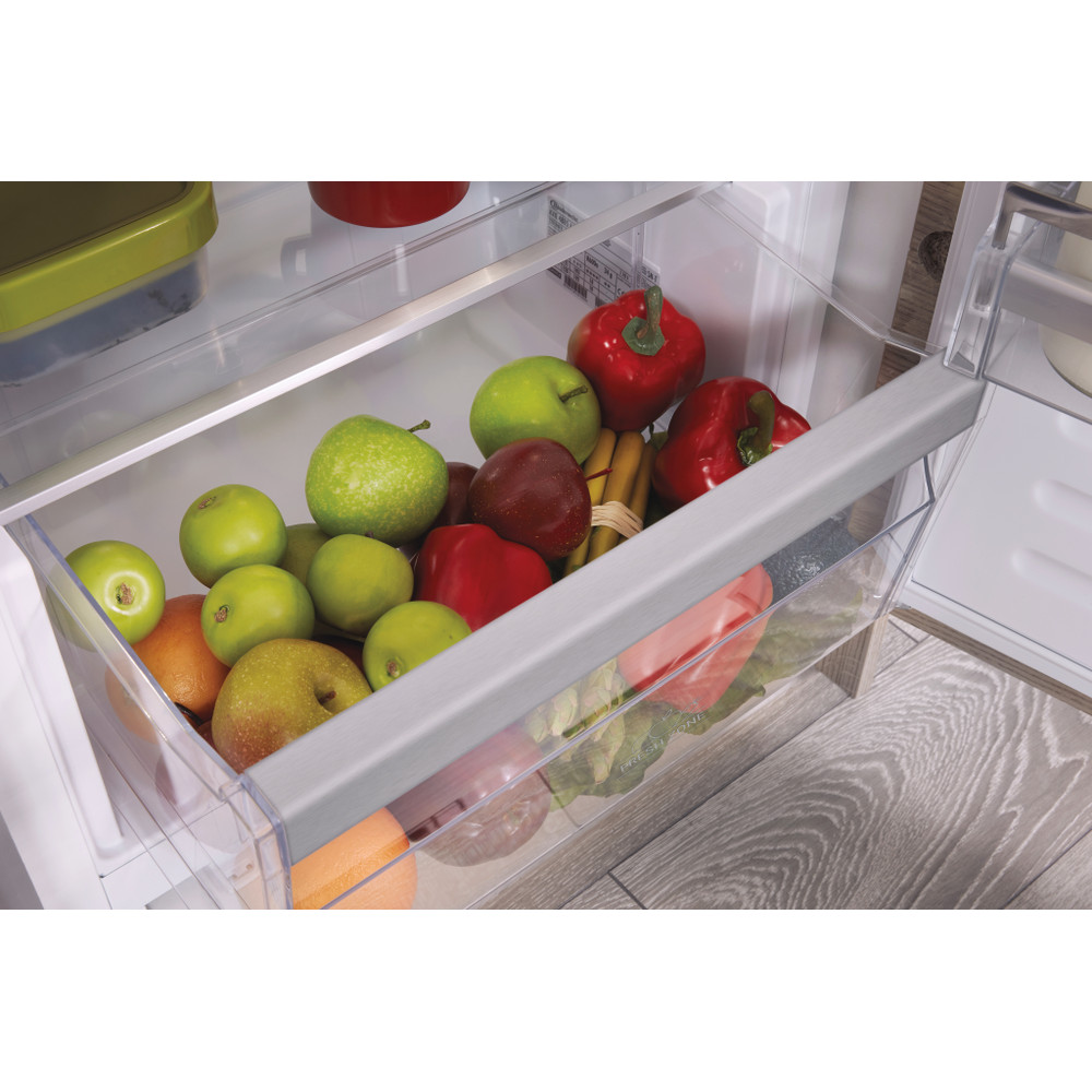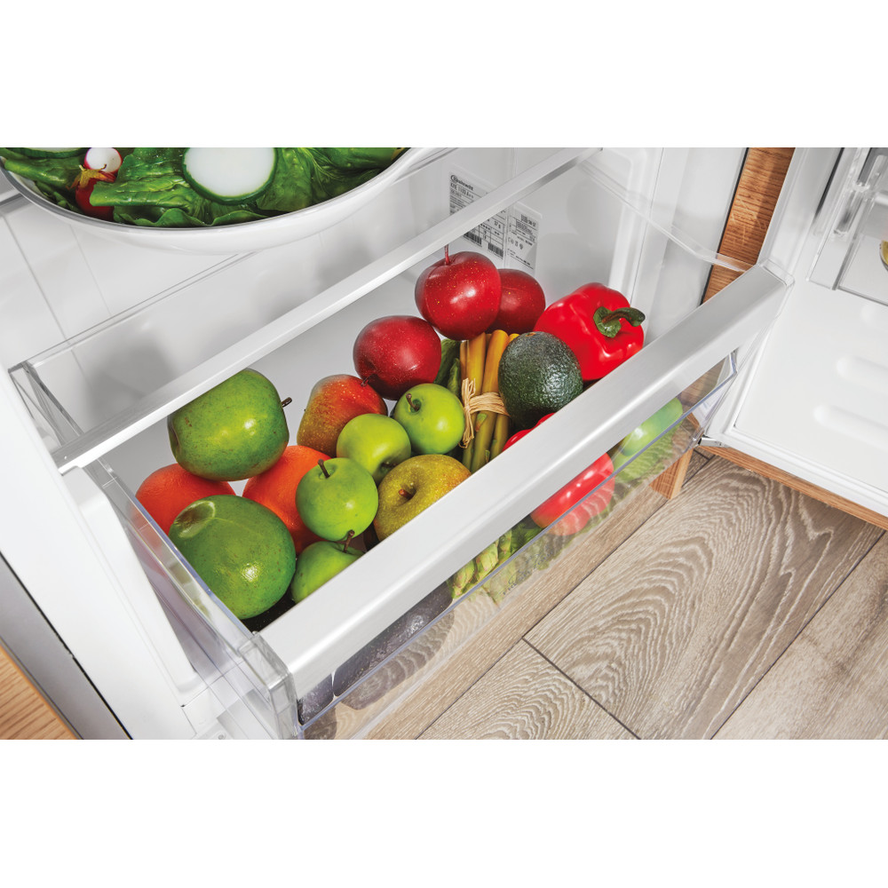 Kenmerken van deze Bauknecht integreerbare koelkast: handig flessenrek om uw flessen veilig te bewaren. Glazen legplateaus met geprofileerde voorkant. Robuust, elegant en extra veilig.