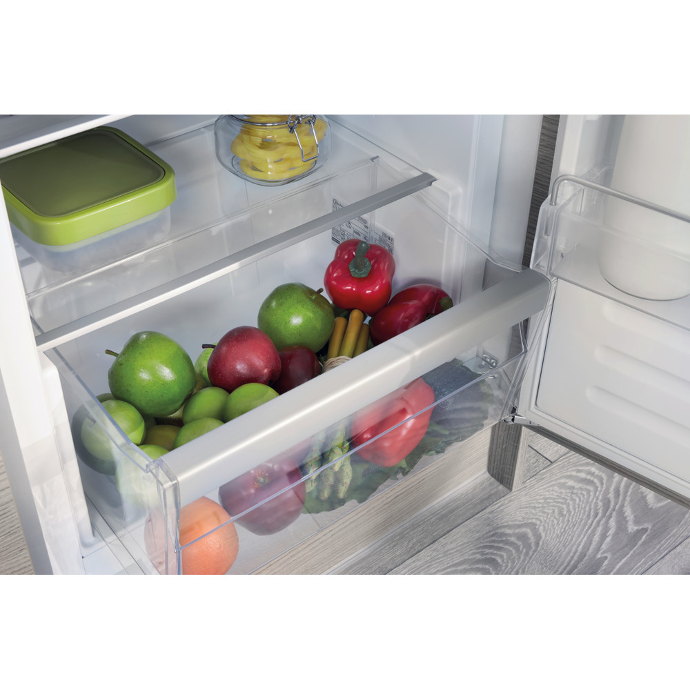 Kenmerken van deze Bauknecht integreerbare koelkast: handig flessenrek om uw flessen veilig te bewaren. Robuuste en elegante glazen legplateaus.