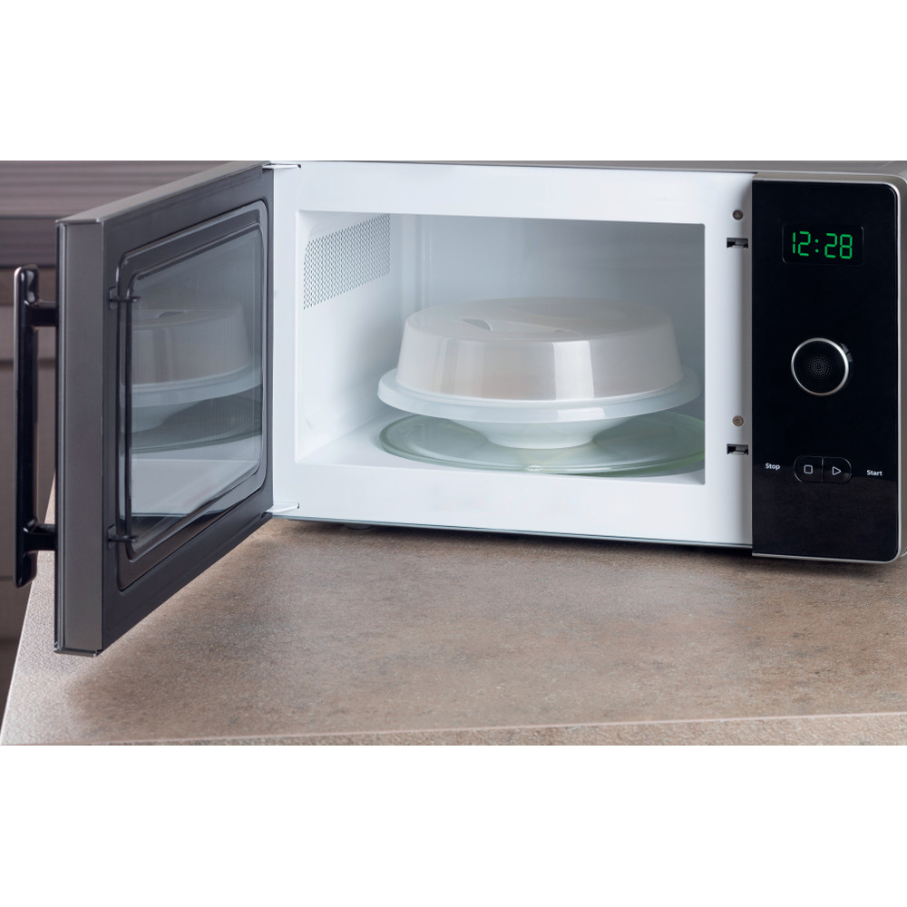 Het Wpro microgolfovendeksel houdt uw microgolfoven schoon tijdens het opwarmen van uw gerechten en voorkomt spatten. Het houdt uw gerechten ook warm. Zijn ergonomische vorm zorgt voor een eenvoudig gebruik en het vrijlaten van stoom. BPA vrij. Afmetingen Ø26.5 cm.